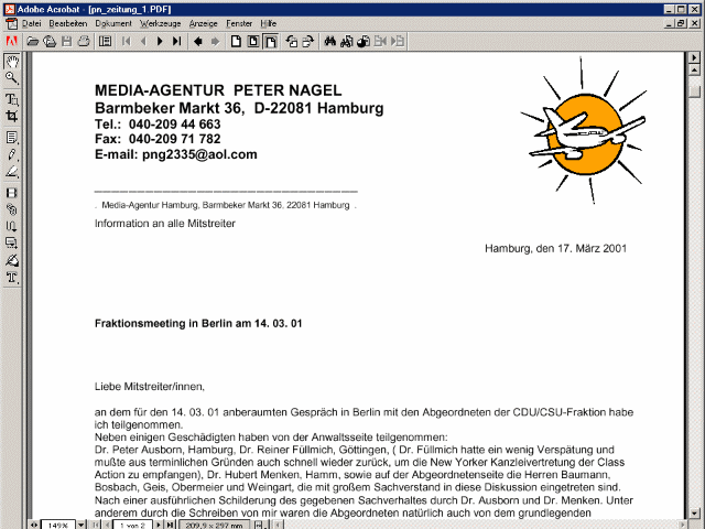 Herr Nagel hat uns per mail vom 18.03.2001 20:20 Uhr angehängten Bericht